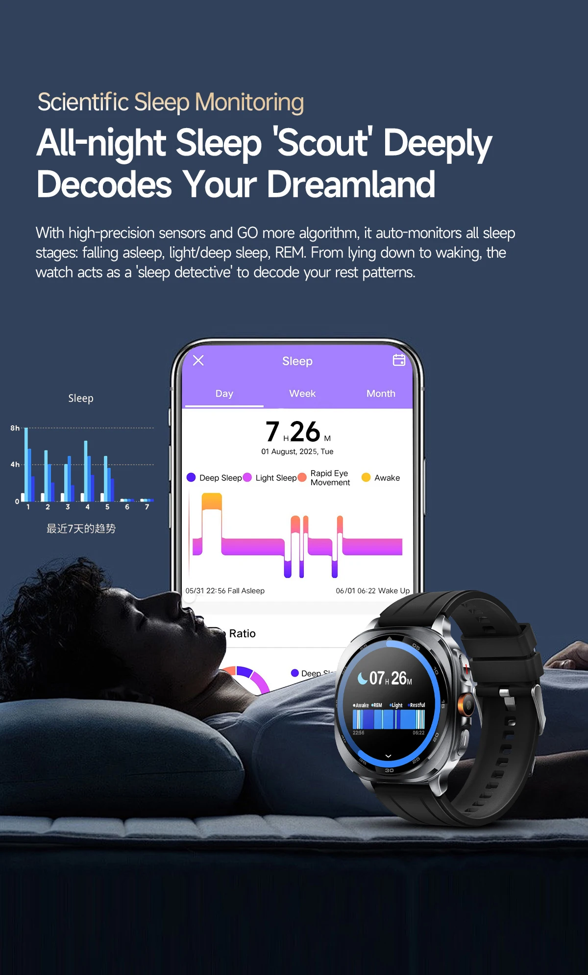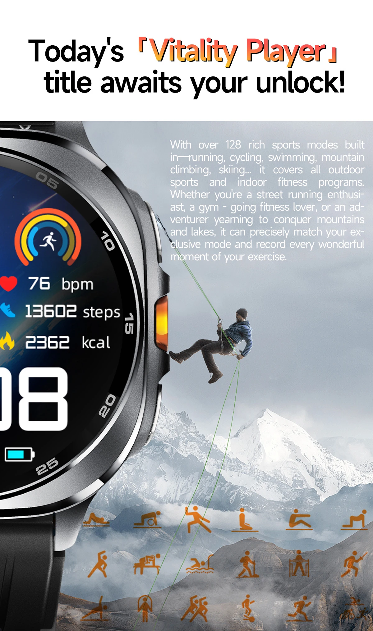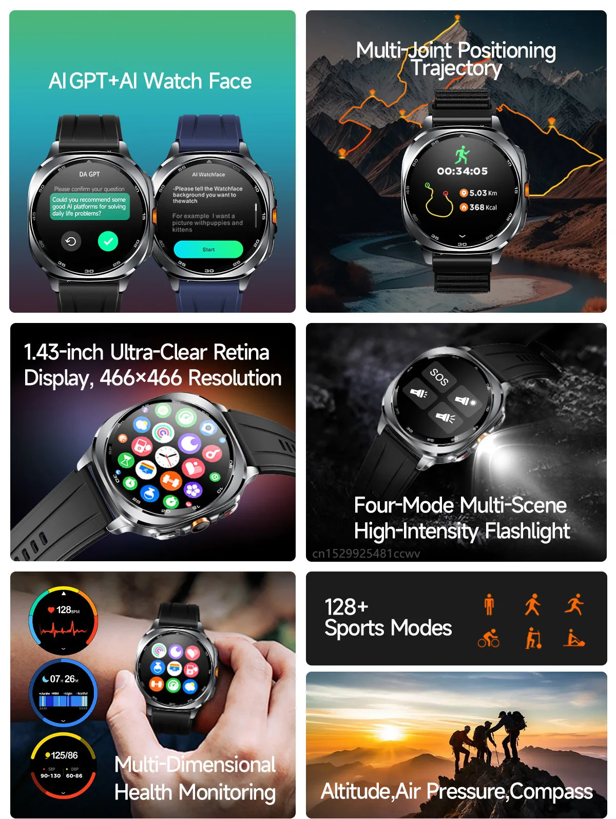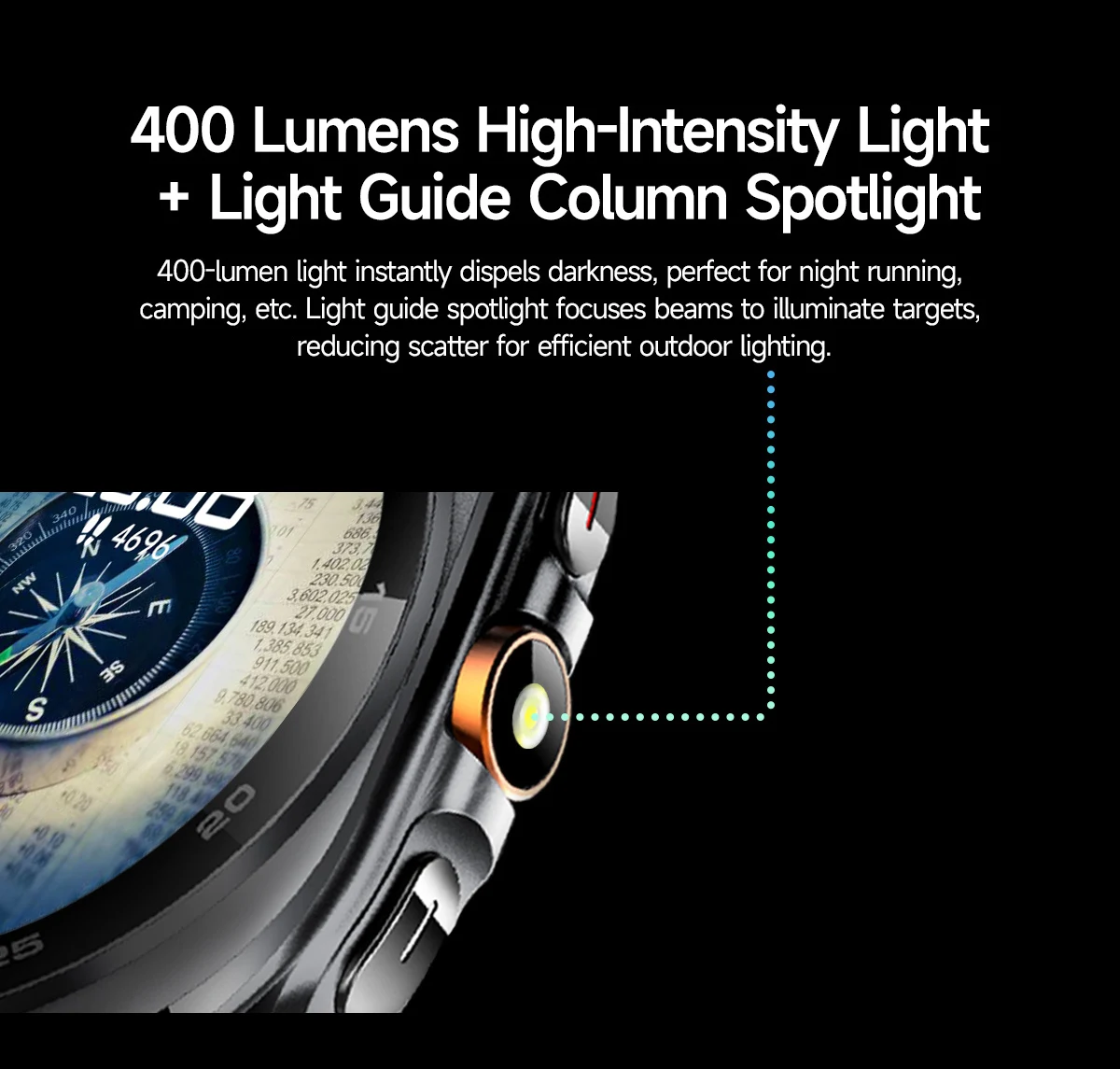 TEQDOT-TS400 Smart Watch AMOLED Bluetooth Calling GPS Positioning Flashlight Compass Altitude Barometric Pressure Health Monitor