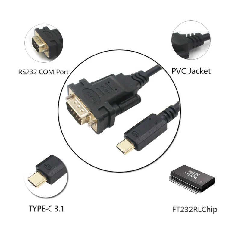 This cable is a USB to RS232 serial converter cables incorporating FTDI FT232RL USB to Serial UART interface IC device which handles all the USB signalling and protocols.